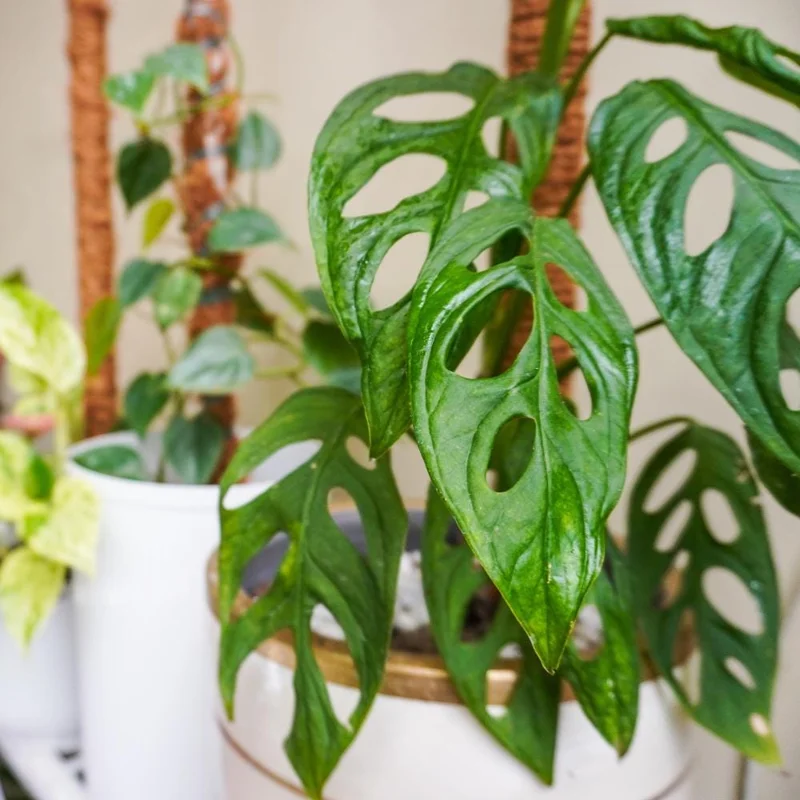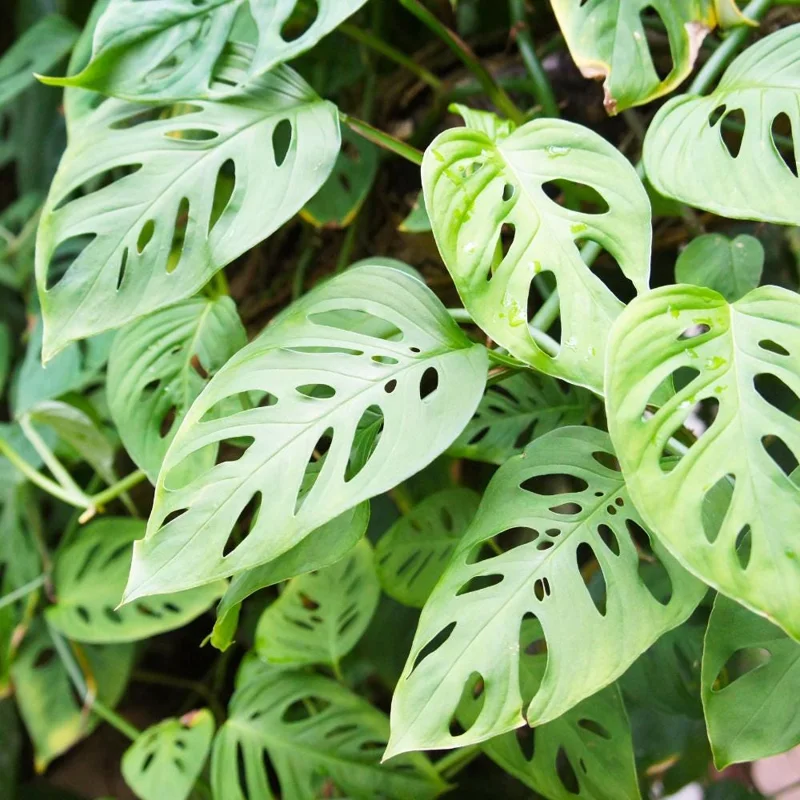 The monstera deliciosa care principles apply well to the adansonii variety. Fertilize your plant every 2-4 weeks during the growing season (spring and summer) with a balanced liquid fertilizer diluted to half strength. Reduce or stop fertilizing during the fall and winter months when growth naturally slows. The ideal temperature range for this tropical plant is between 65-80°F (18-27°C), and it should be protected from cold drafts. As an indoor climbing plant, providing a moss pole or trellis will encourage larger leaf growth and support its vining stems. Pruning can be done to maintain its shape, control size, or propagate new plants from cuttings. Keep an eye out for common pests like spider mites and mealybugs; address any infestations promptly with insecticidal soap.