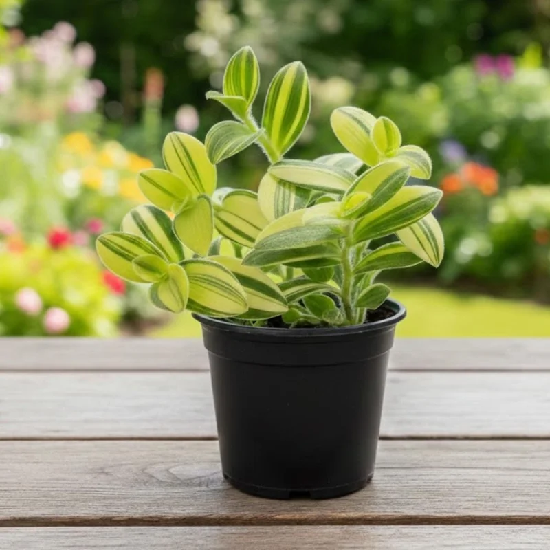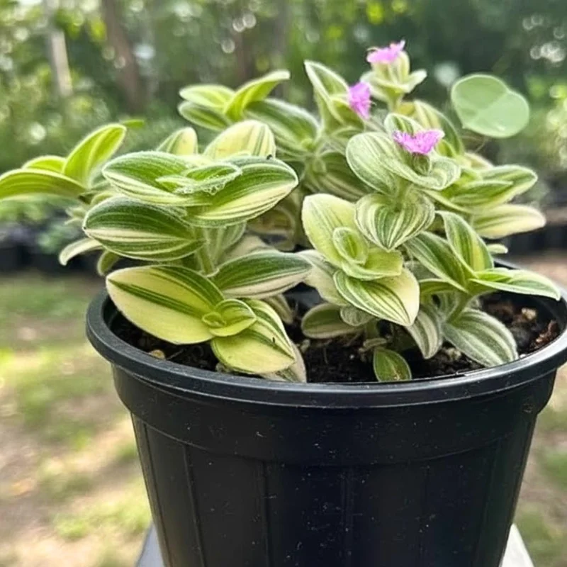 - Q: What size pot does this Tradescantia come in? A: This Tradescantia live plant is shipped in a standard 3.5-inch nursery pot, perfectly sized for its initial growth stage and ready for easy display or repotting.