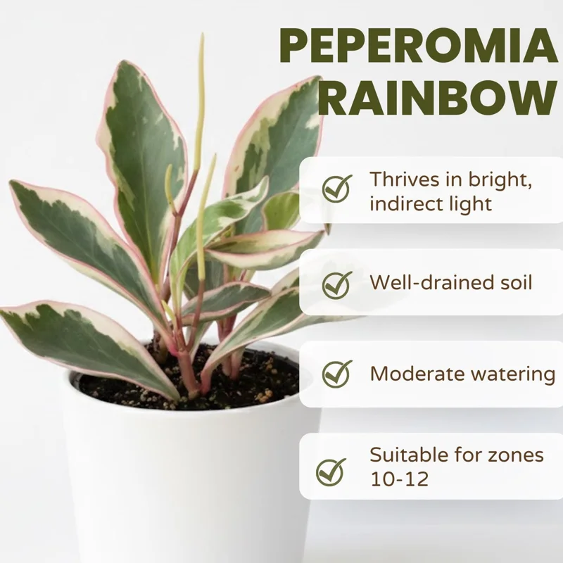 - Q: Is this an indoor or outdoor plant? A: While it can thrive outdoors in USDA zones 10-12, the watermelon peperomia live plant is primarily grown as a compact houseplant due to its preference for consistent indoor temperatures and humidity.