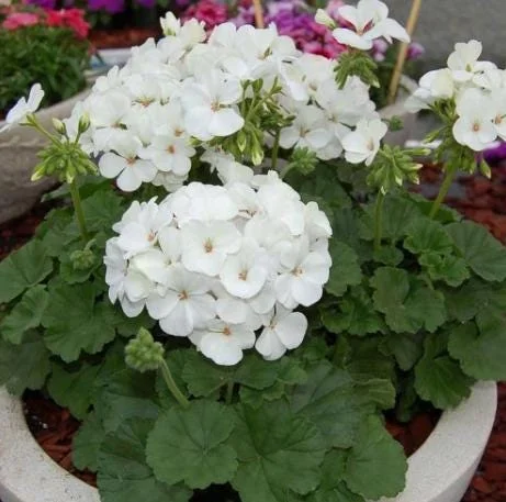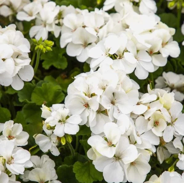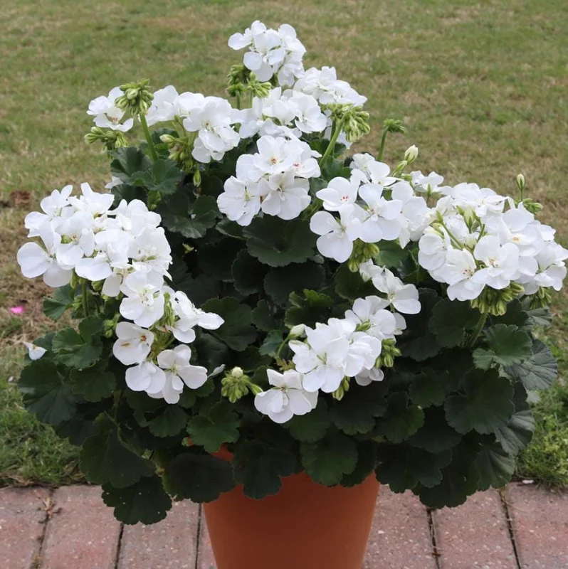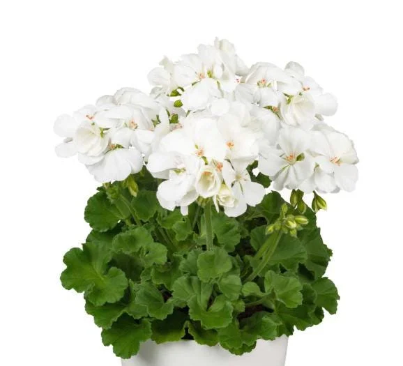 Transform your living space or garden with the timeless beauty of a white geranium live plant. This classic flowering plant is celebrated for its clusters of bright white or creamy-white blooms, which stand out beautifully against its rounded green foliage. Some varieties of this perennial geranium flowers display distinctive darker “zonal” markings on their leaves, adding an extra layer of visual interest. The clean white flowers create a fresh, elegant aesthetic that pairs wonderfully with other colorful bedding plants, providing a sophisticated touch to any landscape design or indoor display. Geraniums are known for their robust nature and continuous blooming, making them a popular choice for both novice and experienced gardeners looking to add consistent color and charm.