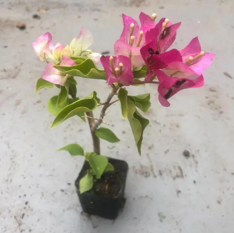 - Q: What size pot does it come in? A: Your white pink bougainvillea live plant will arrive in a 4-inch nursery pot, providing a well-established root system ready for transplanting into a larger container or directly into your garden.