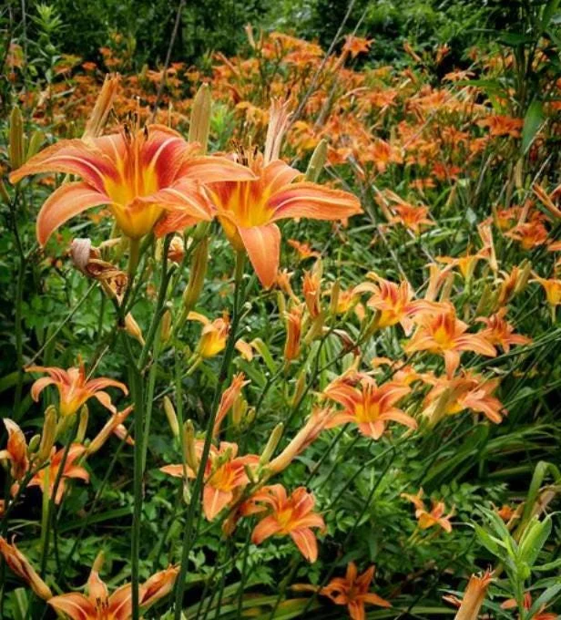 The mature perennial flower plants will produce striking trumpet-shaped flowers in vibrant orange hues. These daylilies are known for their ability to naturalize, meaning they will spread and multiply over time, creating a fuller, more established look in your garden. They are an excellent choice for creating drifts of color, filling large garden beds, or providing a classic look to cottage gardens. The long-lived nature of Hemerocallis fulva ensures that these plants will return to grace your landscape for many seasons to come with minimal intervention.