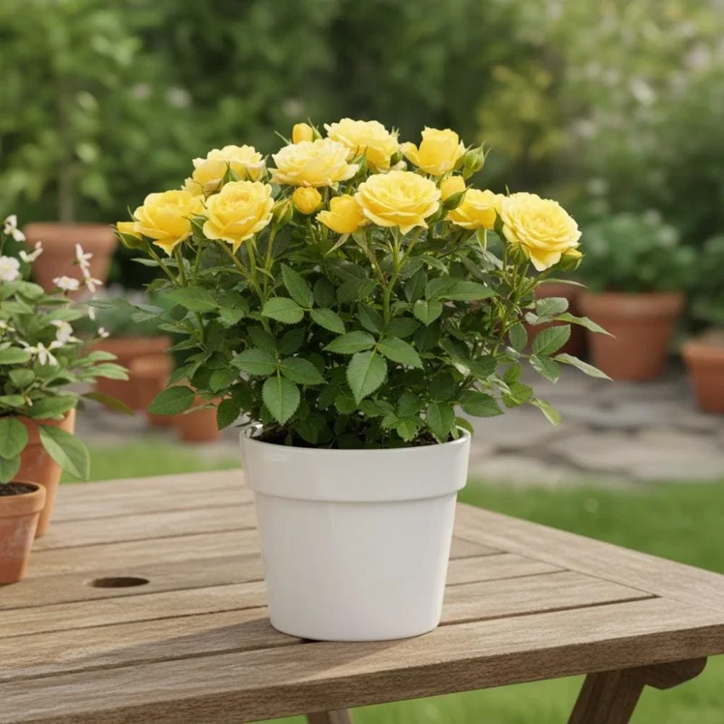 - Vibrant Yellow Blooms: Enjoy the continuous display of small, intensely colored yellow flowers. These vibrant mini rose flowers bring a cheerful and sunny disposition to any environment, enhancing visual appeal with their delicate yet striking appearance.